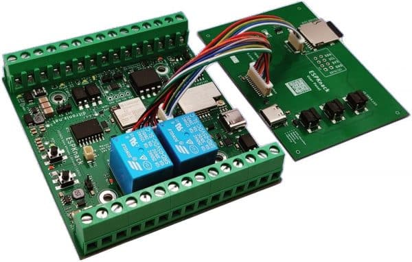 The ESPKnack will be the main board, together with optional Panel display board and DIN enclosure.