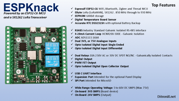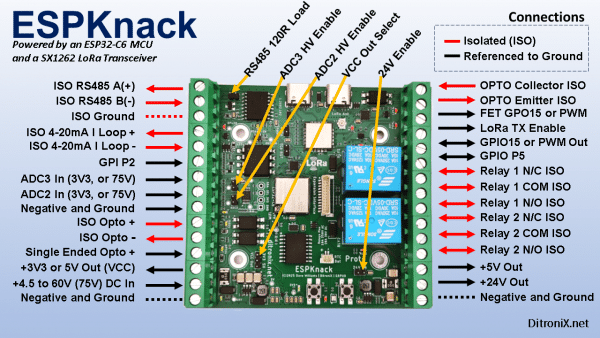 ESPKnack – ESP32-C6 IoT Wi-Fi LoRa SX1262 Galvanically Isolated Interfaces RS485 RTC