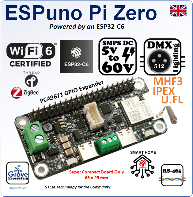 - ESPuno Pi Zero ESP32-C6-1U (IPEX MHF3)