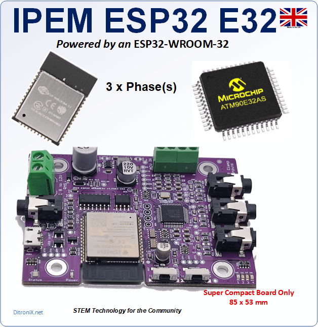 An enhanced board project, called IPEM, has been designed, based on an ESP32 integrated with an ATM90E32 (or ATM90E36), for direct 3 Phase, 3 x Single Phases or 1 x Split Phase (for USA), energy monitor. enhanced high-performance energy metering devices. These are complete current and voltages for each of the phases – fully user configurable.