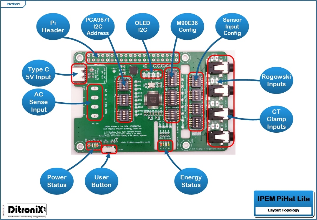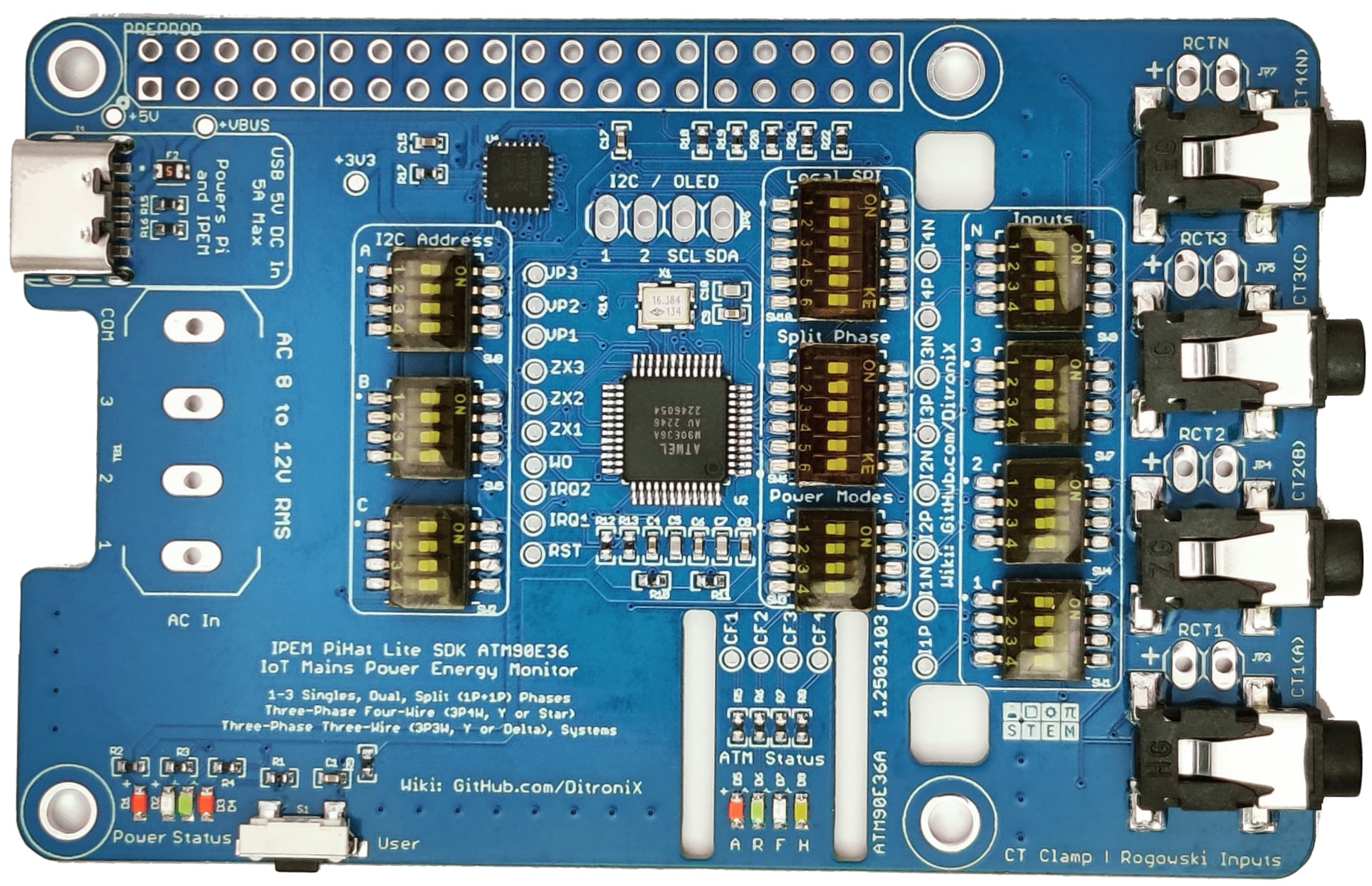 The updated IPEM PiHat and IPEM PiHat Lite production design, now allows for either use of CT Clamps, and/or Rogowski Current Transformers.